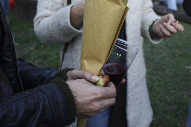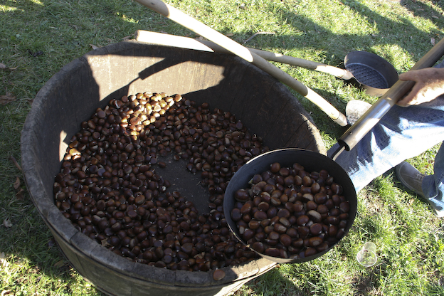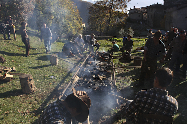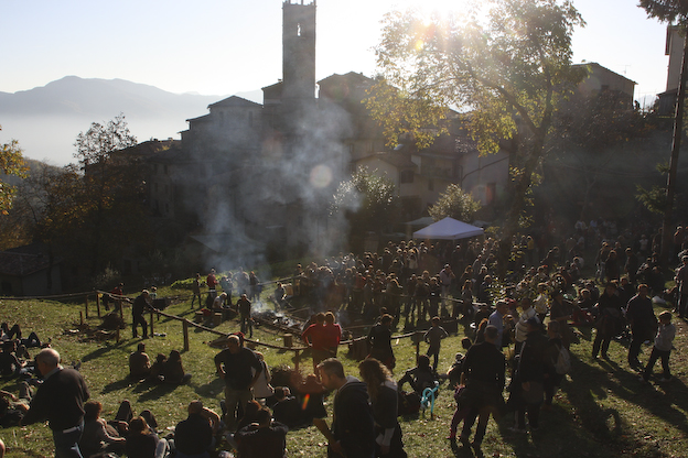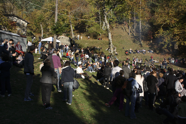 Immancabili le mondine, preparate in uno spiazzo soleggiato a ridosso dei primi castagni dove nelle padelle appoggiate sulla brace sono state fatte saltate centinaia di chili di castagne sane e polpose, dato che da queste parti il cinipide, il temutissimo parassita del castagno, pare non aver ancora portato grossi danni.