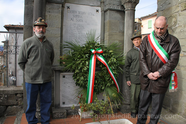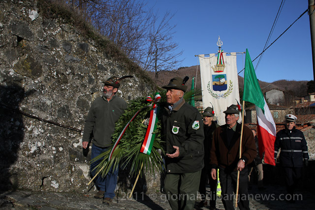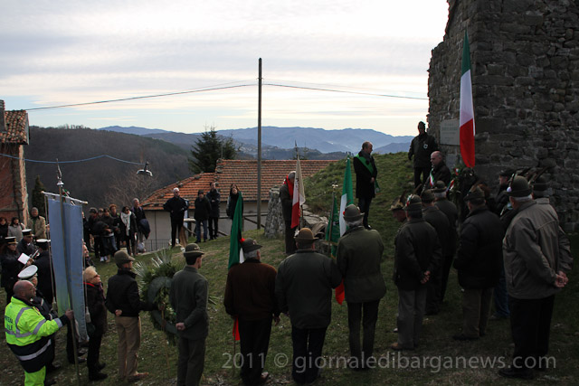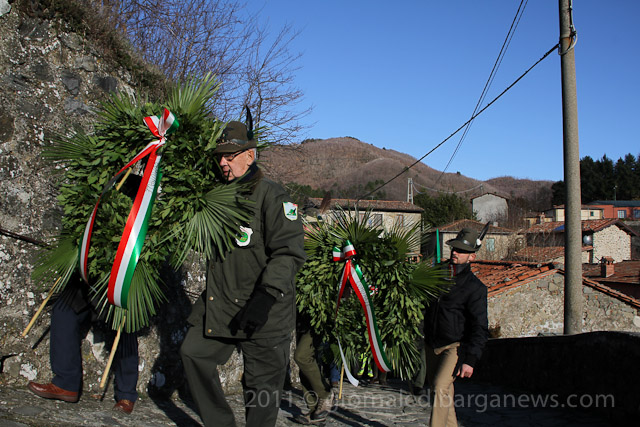 Boxing Day morning in Sommocolonia and this year luckily for the Alpini, the “Gaetano Luporini” Barga Band and all present, the terrible freezing north east wind which at last years event froze everybody rigid, this year was instead replaced by bright sunny weather with glorious views right across the valley. A large crowd in Sommocolonia this morning therefore celebrated the events of December 26, 1944 in comparative warmth and comfort.