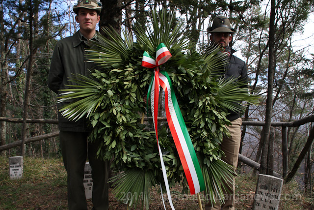 The first was placed at the war memorial just outside the church. A second at the base of the tower where John Fox and his companions were killed and the third and final wreath of the day was laid just above Sommocolonia at the Memorial to the Italian Partisans.