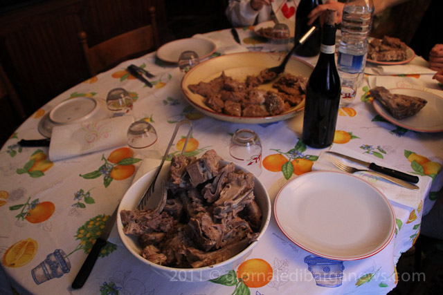 One of the most delicious dishes that can be found during the winter months in Barga is polenta di neccio – polenta made with chestnut flour often accompanied by ossi di maiale – pork bones.
