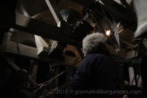 The traditional religious festival of the Immaculate Conception, held every year on the eighth of December would not be complete in Barga without the sound of the bells in the Duomo ringing out over the city for one solid hour – the so called “Doppio dell’Immacolata” and last night was no exception. From nine o’clock until the stroke of 10 o’clock the three huge bells at the top of the Duomo tower were kept in motion by a team of bell ringers – the Campanari of Barga.
