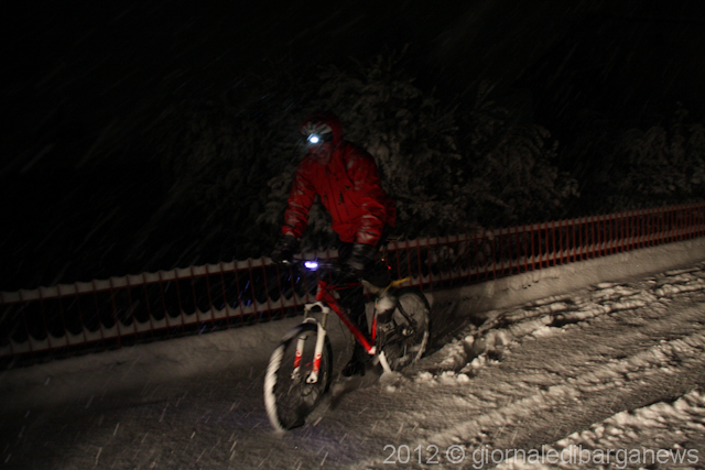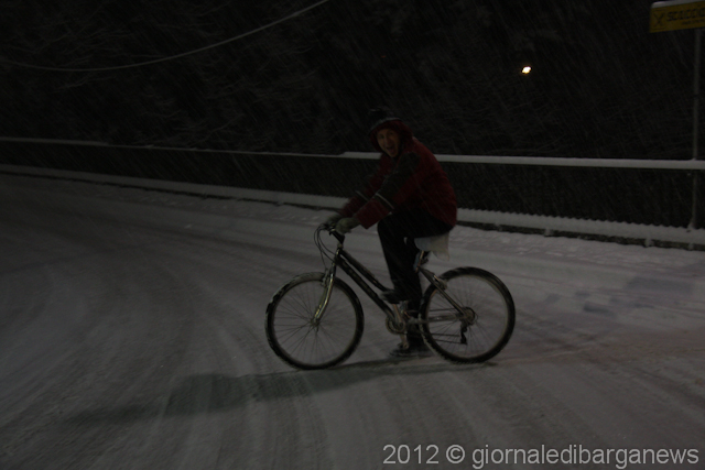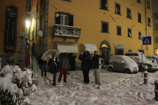 A Barga, ma anche negli altri paesi, in tanti sono scesi in strada per assistere alla nevicata. Qualche coraggioso anche in bicicletta.