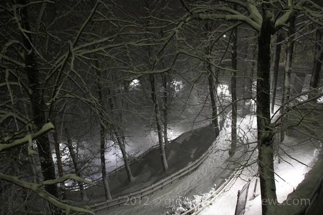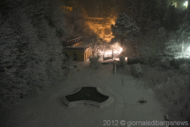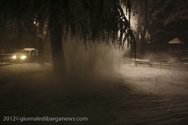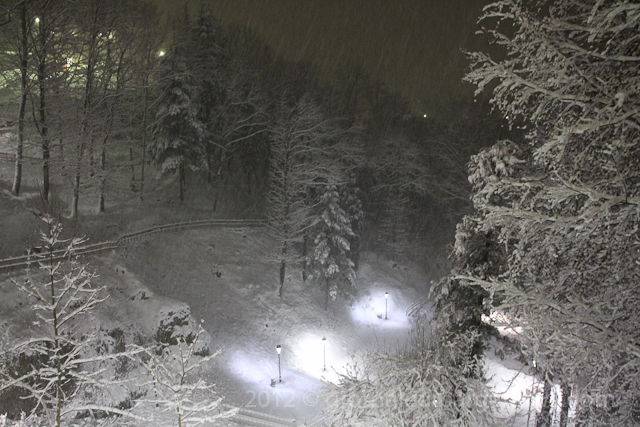 2.am – Parco Bozzi just outside the main walls of Barga Vecchia a few minutes ago. It has now stopped snowing but the temperature has dropped to -3