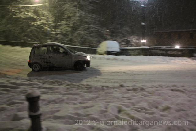 Qualcuno, per fortuna pochi, si è ritrovato in mezzo alla nevicata senza essere attrezzato e così qualche disagio si è registrato in serata sulla strada Barga – San Pietro in Campo, prima per un TIR e poi per un’auto, ma il blocco del traffico è durato poco.