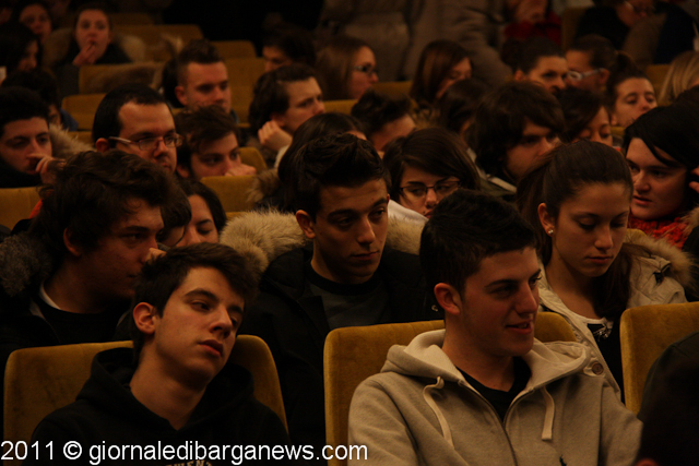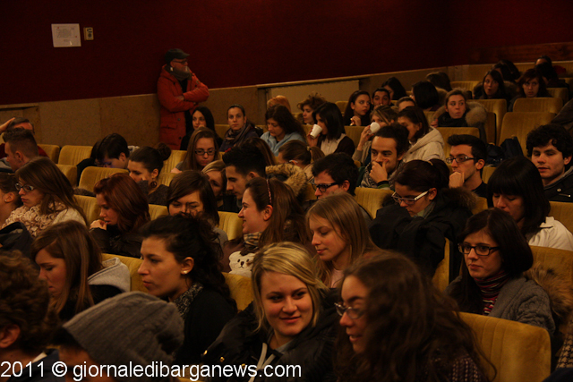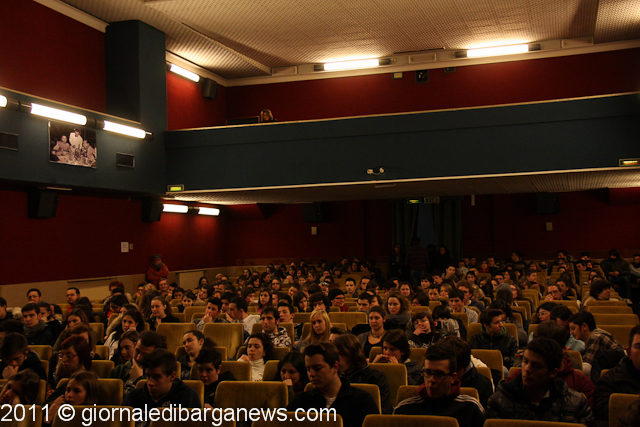 A salutare i ragazzi prima dell’inizio del filmato, gli assessori all’Istruzione, Renzo Pia ed alla Cultura Giovanna Stefani, in qualità anche di rappresentante dell’ISI di Barga che ha tra le altre cose parlato del particolare impegno degli studenti barghigiani sulle tematiche della Shoah.