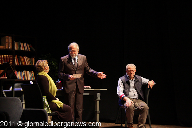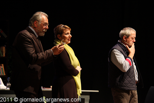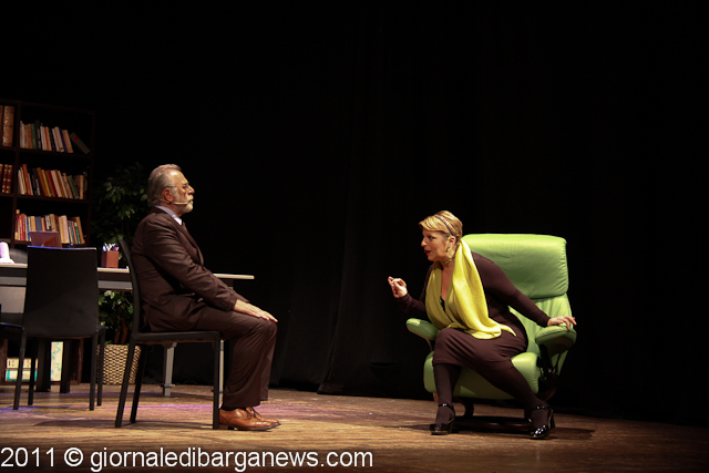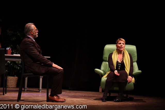 Tra i tre nascono una serie di equivoci dovuti all’intrecciarsi dei problemi dei due sposi con quelli dell’analista e tra litigi, argomenti svelati e fobie, il testo affronta il dramma del matrimonio, delle cose non dette e delle incomprensioni in chiave comica, ma non superficiale. I tre bravi attori hanno fatto sorridere così tanto il pubblico di Barga che già da metà spettacolo anche loro non sono più riusciti a frenare le loro stesse risate, durante alcune battute ed a questo punto la loro simpatia è divenuta più che mai contagiosa. Ma del resto è anche questo loro lato del carattere che li fa amare al grande pubblico della televisione e non solo agli appassionati di teatro.