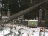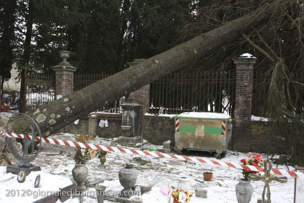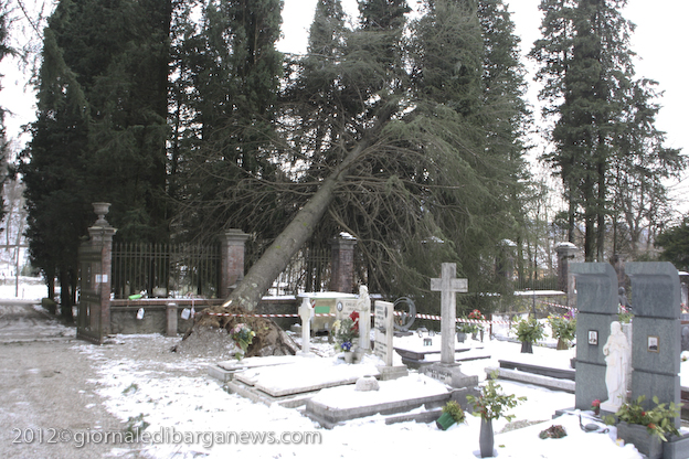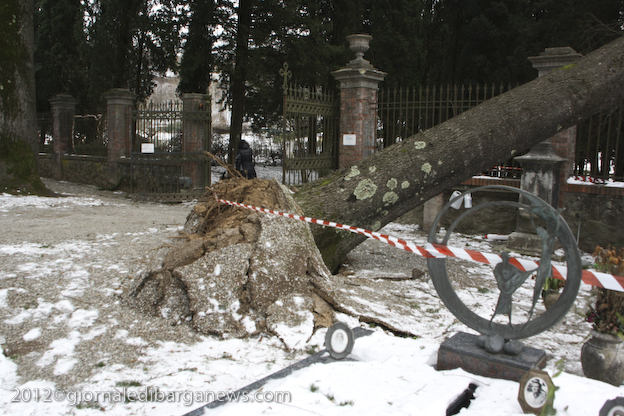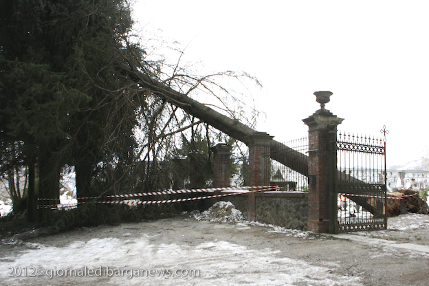 Non è stato danneggiato niente; solo la recinzione è stata leggermente schiacciata, ma data l’altezza e la mole del cedro poteva capitare ben di peggio.