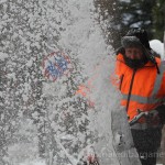 Alle 12.00 via Provinciale è sgombra da neve anche grazie al fatto che la temperatura, durante la mattina, si è leggermente innalzata, mentre via della Repubblica è ancora coperta da una leggera patina di neve sciolta, che comunque non impedisce il transito.
