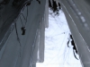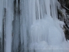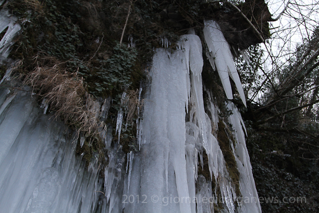 Above the road a small stream, the Roncagliana has completely frozen over forming a solid ice waterfall several meters high.