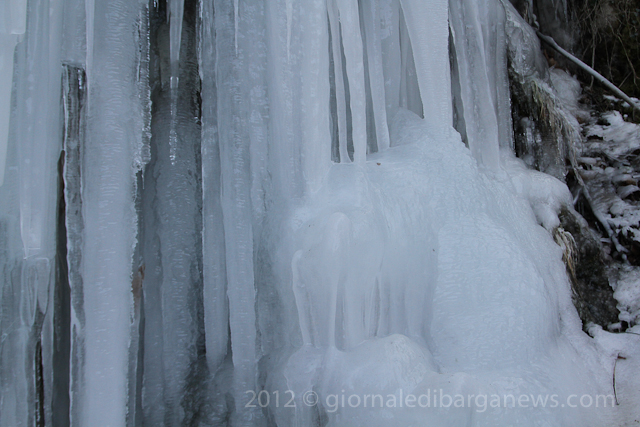 The images in this article show the impressive waterfall and stalactites of ice that can be found along the road to Sommocolonia, just above Ponte Catagnana.