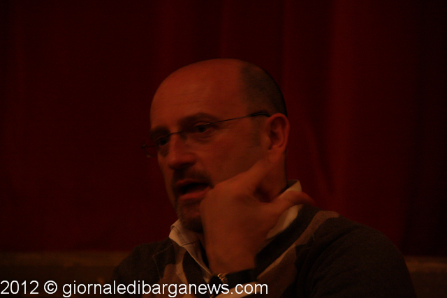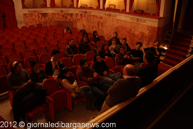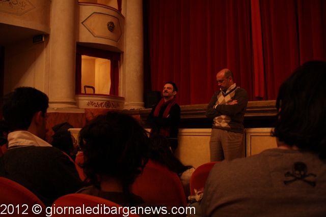 Prima de “Il processo di Franz Kafka”, Ciro Masella e Francesco Niccolini hanno incontrato gli studenti delle scuole superiori di Barga che partecipano al progetto “Scrivere di teatro” e che accompagnati dal critico teatrale Igor Vazzaz e dal professor Paolo Galletti hanno approfondito il lavoro di sceneggiatura e non solo che ha portato allo spettacolo di ieri sera.