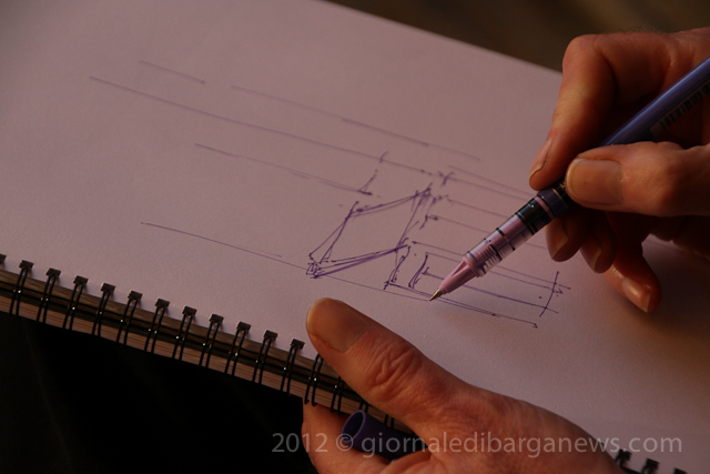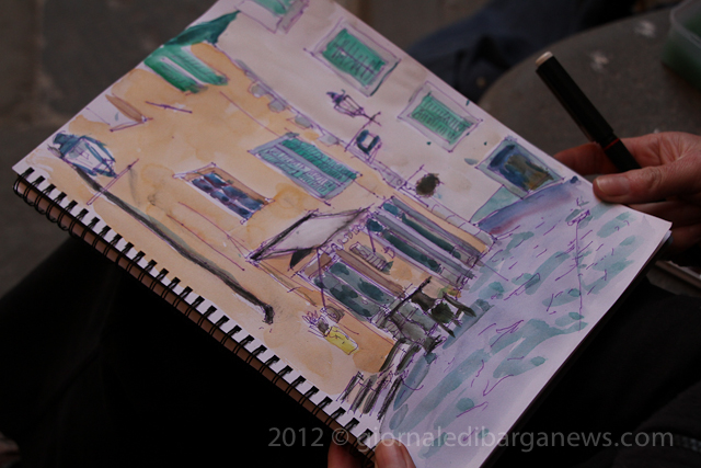 This afternoon he started the first of his sketches outside of Aristo’s bar, the unofficial cultural centre of Barga.