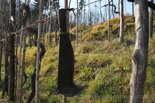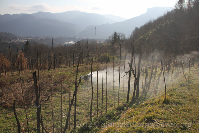 The sound of tractors moving around the hills and the occasional buzz of a chainsaw means that people have started working out in the woods, fields and vineyards once again. In fact this is the time of year for pruning and tying back the vines and preparing the ground for the coming season.