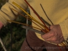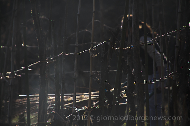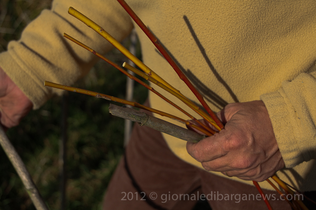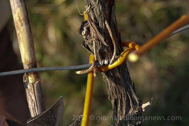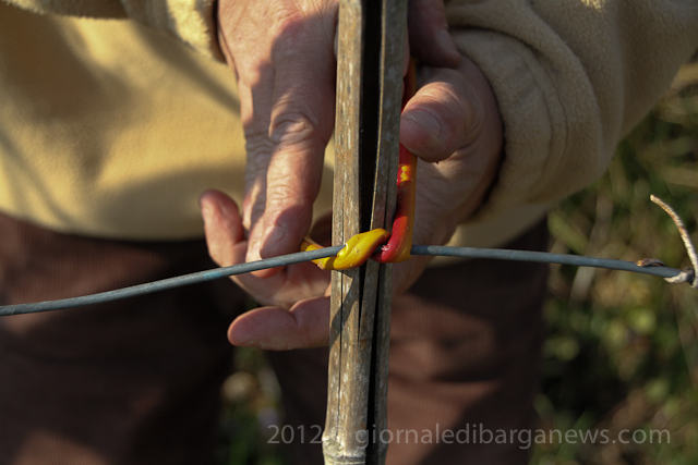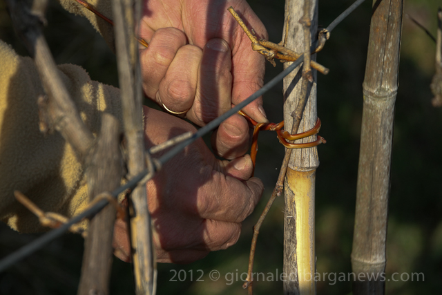 Traditionally the vines are tied back with willow which has been soaked before hand to keep it supple but it is a very labour intensive job which has to be done with patience and requires some skill to not break the willow as it bends round the vines.