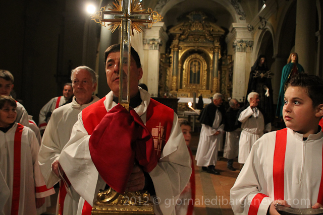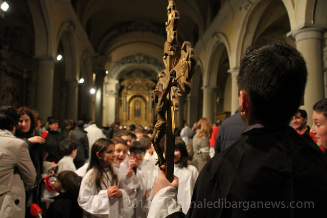 Il corteo oltre che da fedeli, è stato accompagnato dalle autorità e dalla Filarmonica barghigiana “Gaetano Luporini” e ha percorso le strade di Barga illuminate da ceri rossi, ad indicare il momento del sacrificio.