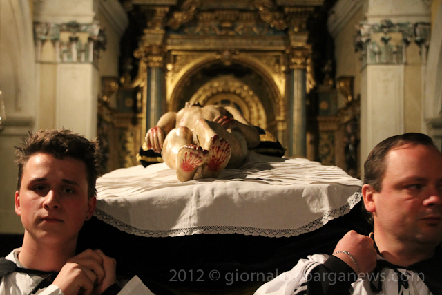 The people start to file out of the church and into the piazza as the procession winds through the candle lit streets of Barga with the confraternities of each of the churches proudly bearing their ancient banners and a statue of a dead Christ which is taken around the city up to Il Fosso just outside the city walls for the final blessing before once more being carried back into the city to the SS.Crociffisso church where it will stay until the following Processione di Gesù Morto in five years time.