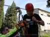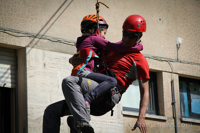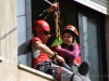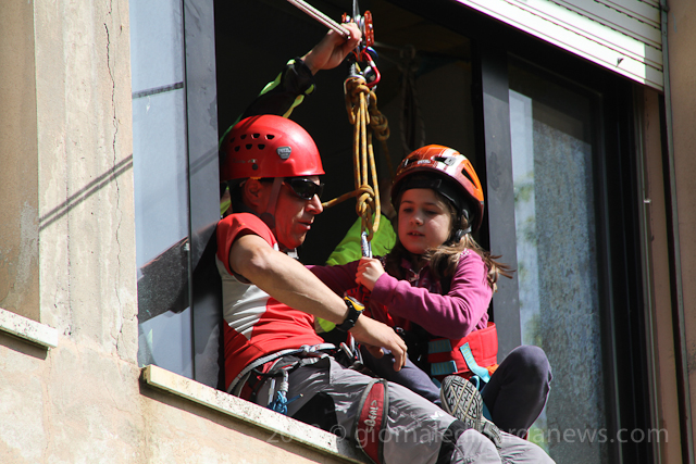 Plus, it wasn’t just a case of counting heads, preparing lists and then re -entering the school – no, today there much more excitement in the air as part of the simulation included one whole class being trapped on the first floor of the building and unable to use the stairs to evacuate were instead being pulled out of the window and launched down an escape rope set up for the occasion by the Soccorso Alpino e Speleologico.