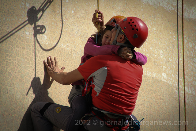 A huge cheer for the assembled students went up as the first of the classmates was winched down to safety but it was nothing compared to when the Head of the school, Prof.ssa Giovanna Mannelli appeared on the window ledge and slid down the rope “to safety”, followed minutes later by the teacher Roberto Valiensi.
