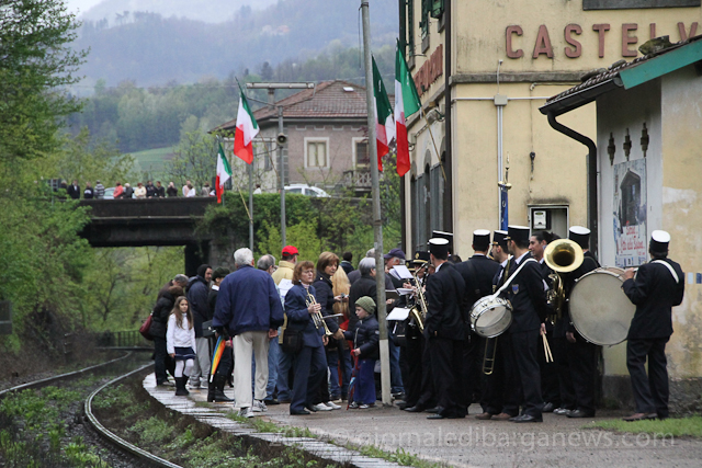 Today was the turn of the Pascoli Steam Train – “Treno Storico del Centenario Pascoliano” which arrived at the tiny Castelvecchio Pascoli station to be met by the Mayor of Barga Marco Bonini, members of his administration, school children and of course the Banda Musicale “G. Luporini” from Barga.
