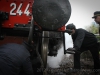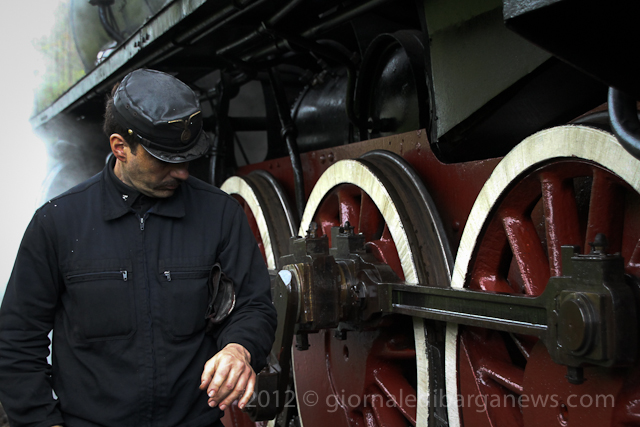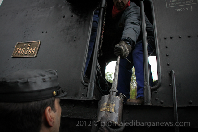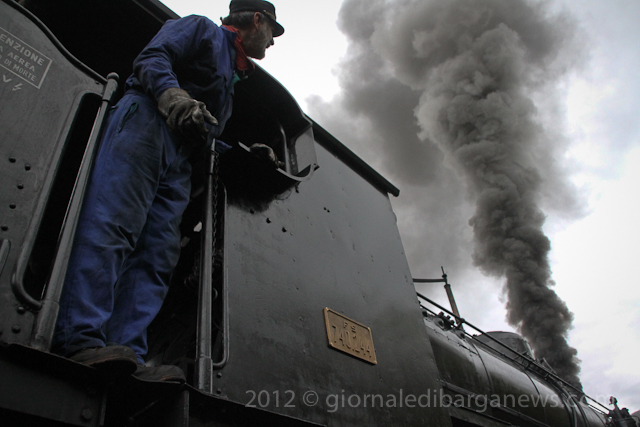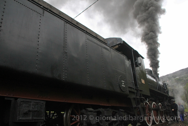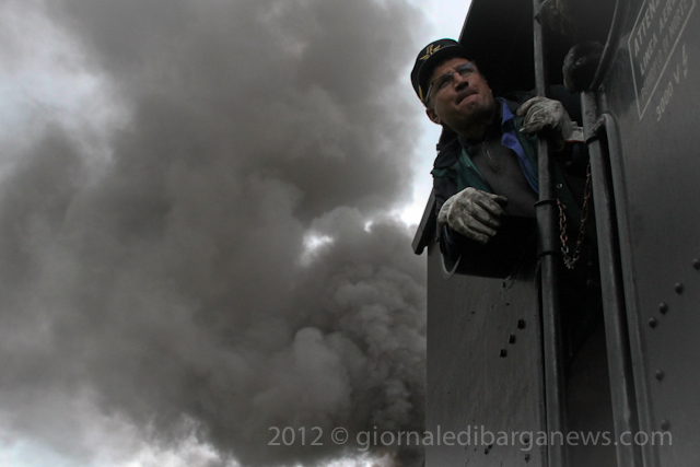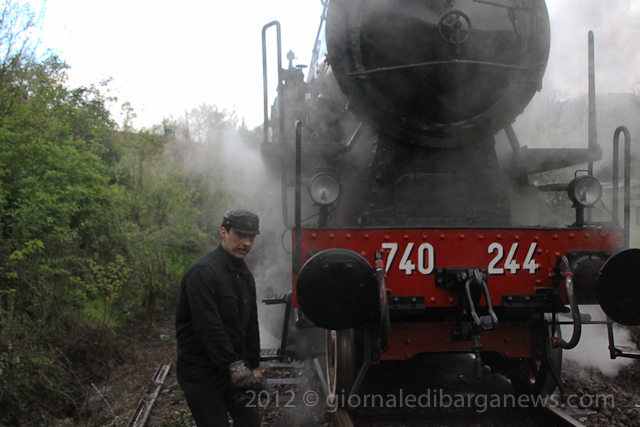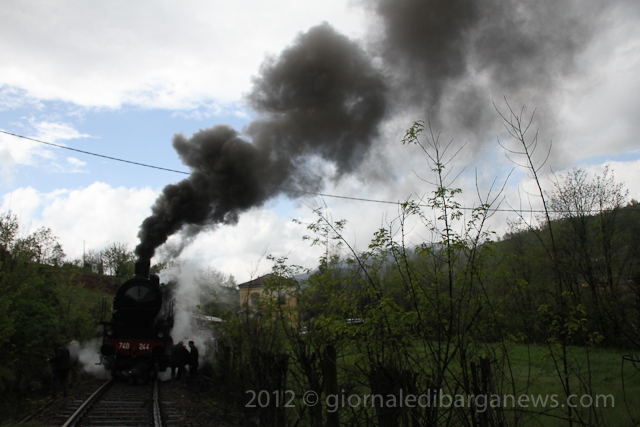 The steam train, the 740 244 built by “Ernesto Breda” in Milan will shortly be celebrating its own centenary as it was built back in 1917 but it was still going strong as it pulled out of the station a few minutes later with seven coaches behind it on its way up into Garfagnana.