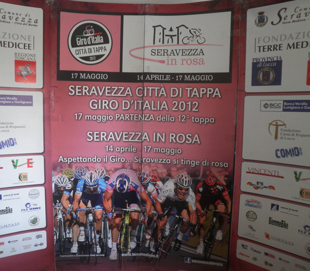 Per preparare il paese a questo giorno di festa e di grande sport, il Comune di Seravezza e la Fondazione Terre Medicee, con la collaborazione della Provincia di Lucca e della Regione Toscana, grazie al sostegno di Fondazione Cassa Risparmio Lucca e BCC – Banca Versilia Lunigiana e Garfagnana e di altri importanti sponsor del territorio, hanno organizzato un ricco calendario di iniziative (cultura e spettacolo, enogastronomia, sport, musica, eventi per bambini) e manifestazioni in programma per il prossimo fine settimana e nei due weekend di maggio che precedono la partenza della tappa del Giro d’Italia 2012.