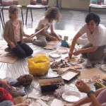 Terrafutura non è solo stand, incontri e contatti: “Stamani abbiamo fatto un laboratorio con i bambini”, dice Sinforosa. “Abbiamo portato i materiali raccolti nei nostri boschi per farne collage con materiali di recupero: i bambini erano contentissimi”.