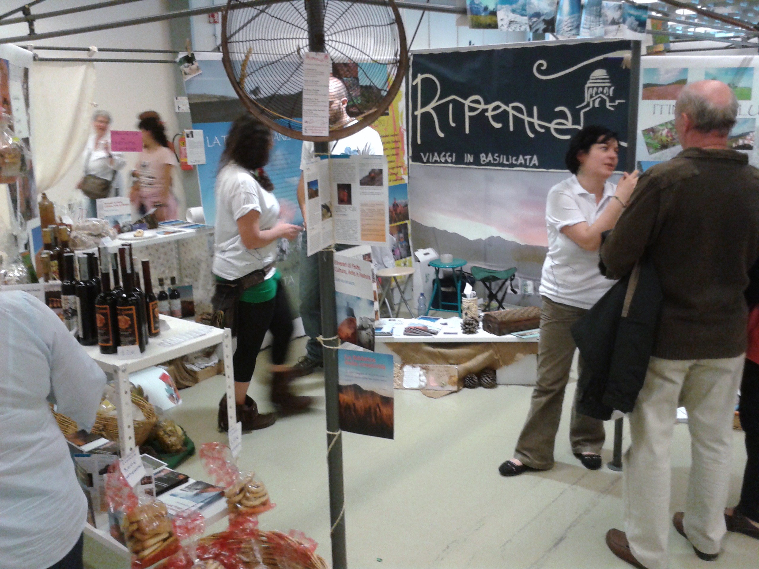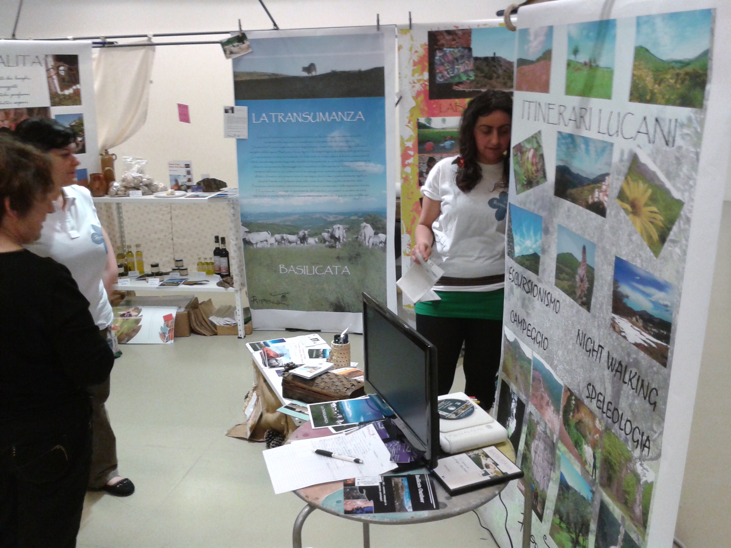“Siamo qui”, dice Giuseppe, “perché la filosofia della fiera è vicina a quella della nostra iniziativa, perché proponiamo modi sostenibili di fruire il nostro territorio, occasioni di incontro con la nostra gente mediate dal reciproco rispetto. Proponiamo soggiorni e trekking, campi estivi anche residenziali per i bambini, vacanze all’insegna della scoperta del sacro, della nostra tradizione”. Non lo nascondo: uno dei pezzi forti tra ciò che propongono è il un trekking in occasione della transumanza. Due giorni al fianco degli allevatori della mucca podolica, una notte sotto le stelle e la festa finale. “Si parte da Sant’Arcangelo” – prosegue Giuseppe – “per arrivare ai piedi del Monte Raparo: li si fa il formaggio e si festeggia tutti insieme”. Mi piace anche l’idea di creare percorsi fruibili ai disabili nel borgo di San Chirico Raparo. L’aiuto di un amico non vedente è una buona premessa per fare qualcosa di buono.