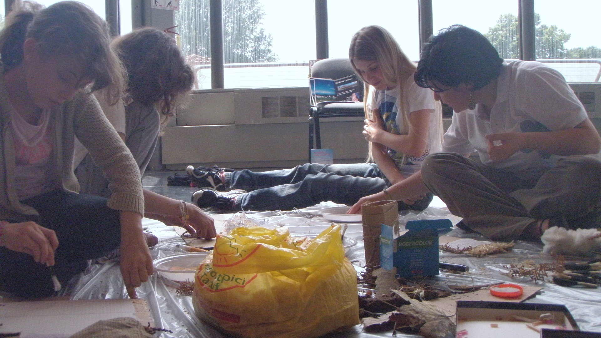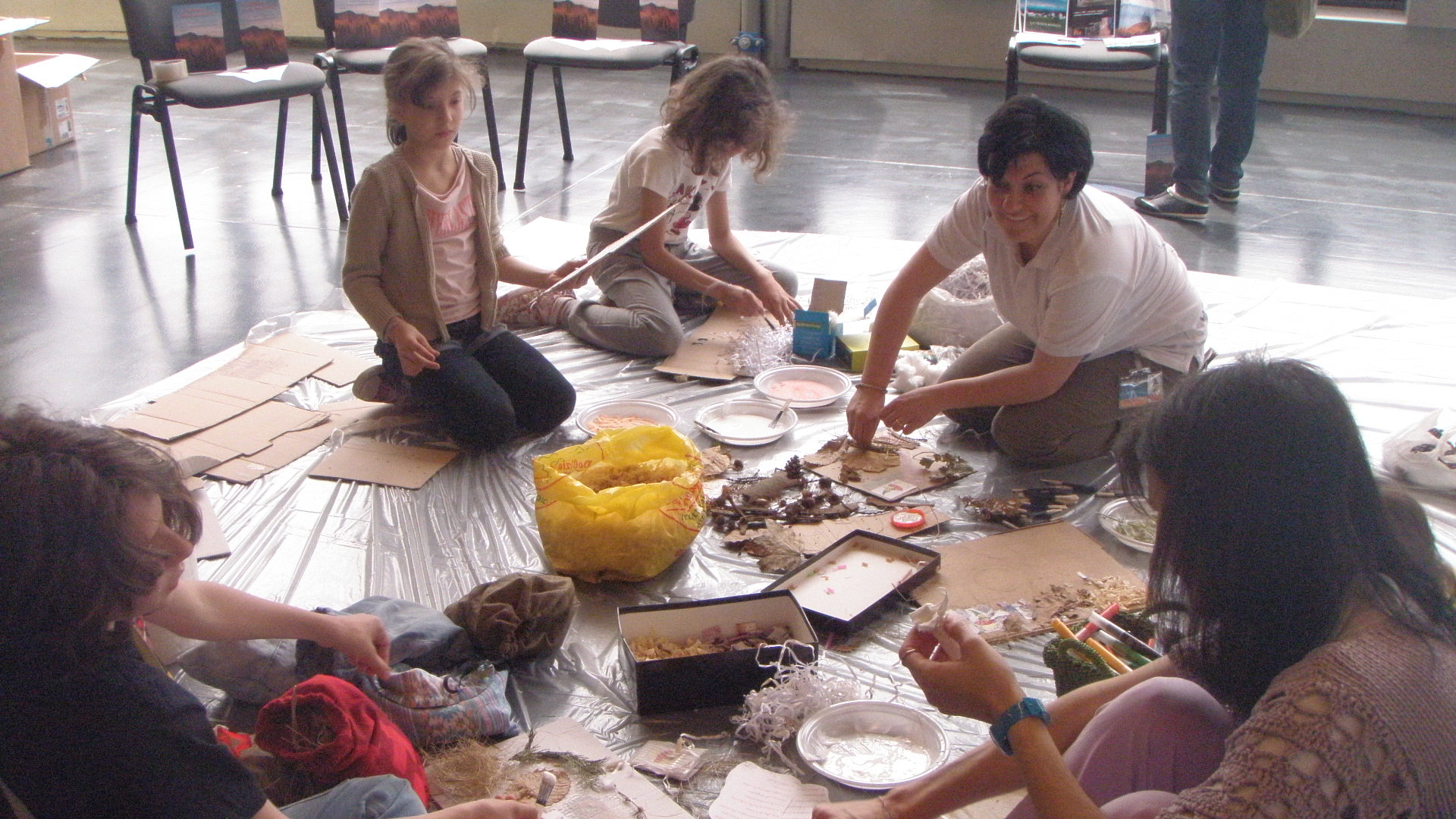 Terrafutura non è solo stand, incontri e contatti: “Stamani abbiamo fatto un laboratorio con i bambini”, dice Sinforosa. “Abbiamo portato i materiali raccolti nei nostri boschi per farne collage con materiali di recupero: i bambini erano contentissimi”.