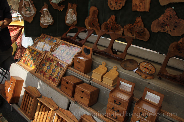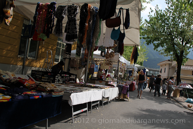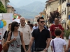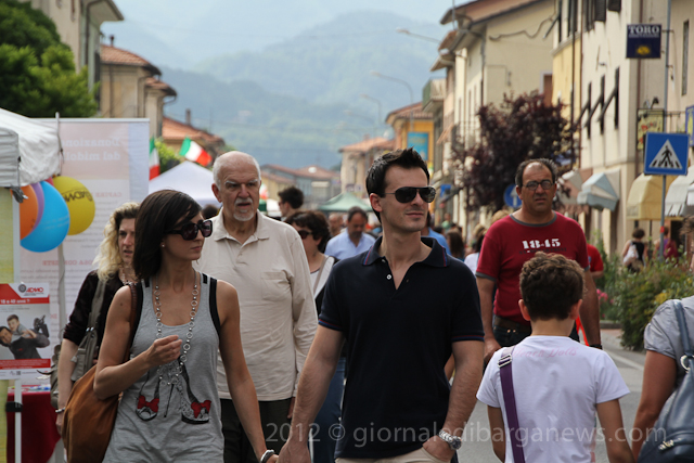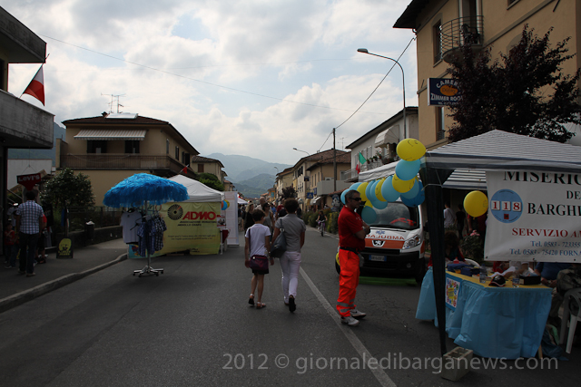 The main road running through Fornaci di Barga , the via della Repubblica was shut to traffic for the afternoon allowing pedestrians easy access to the shops and stalls.
