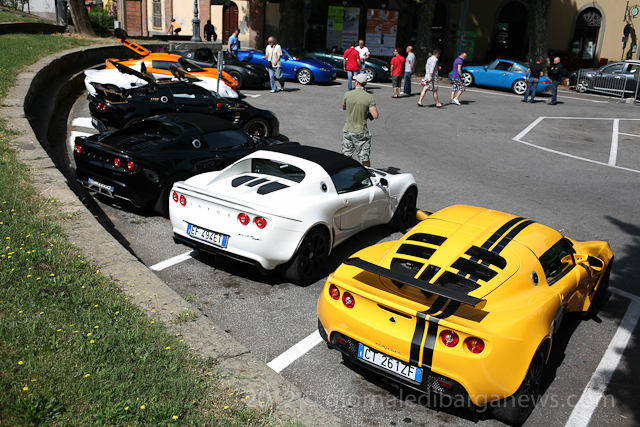 A bright fresh morning in Barga with the sound of the birds singing in the trees and the temperature gradually rising. From afar comes a new sound, a low hum which gradually gets louder the closer it comes until with a deep roar around the corner comes in to view 16 high performance sports cars. The Lotus meeting in barga was off and running.