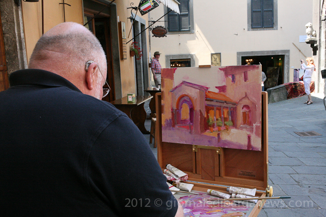 Donna Magnani was last visiting the city with her group of artists all ready to soak up the atmosphere of painting “en plein air” in Barga in May of 2010 (article here) but this week she was back at Casa Fontana with a new group of students and a new tutor – Rodger Bechtold.