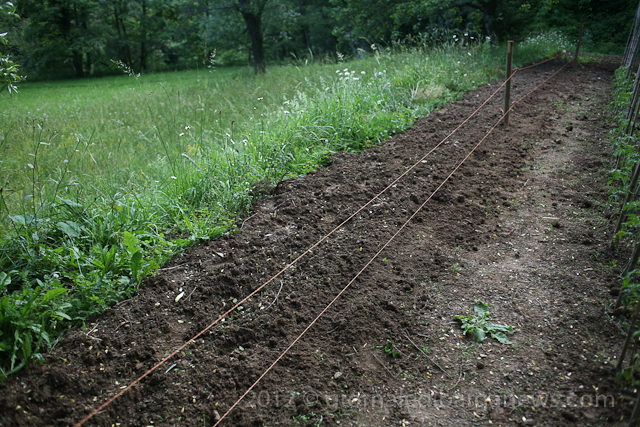 One of the negative side-effects of having an electric fence to keep out the marauding porcupines is that the ground beneath the wire has to be kept clear. Just one blade of grass touching the wire is enough to short out the whole fence. This means that the ground has to be cleared regularly and checked daily. It was another of the reasons for the downsizing this year and using far less electric fence – digging around the complete perimeter is time-consuming and soul destroying but it has to be done.