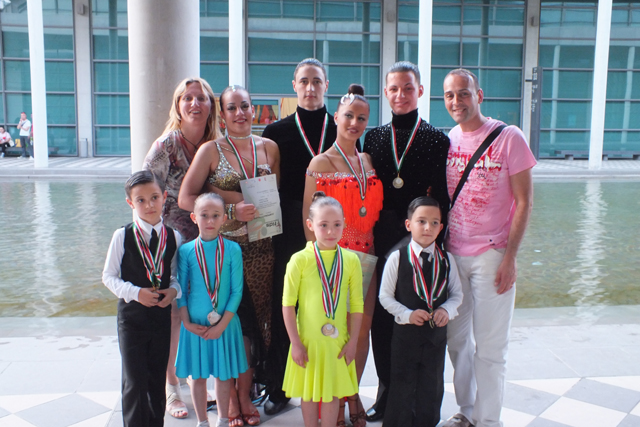 Niccoletta e Daniele, i trainer della scuola, si presentano con 8 coppie dei loro allievi speranzosi di successi e medaglie da riportare a casa dai campionati italiani di categoria presso il quartiere fieristico di Rimini