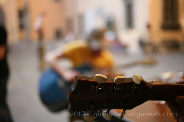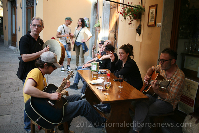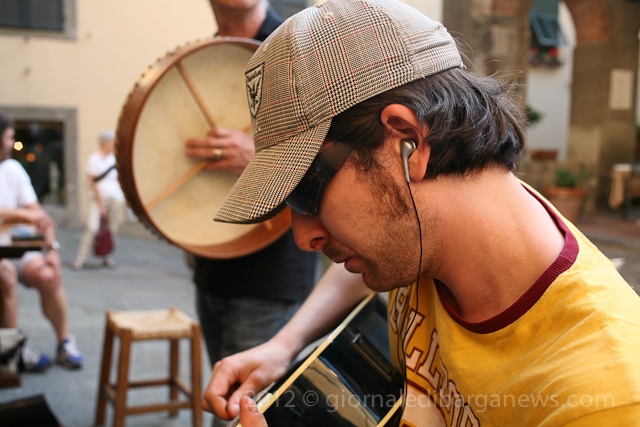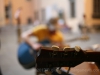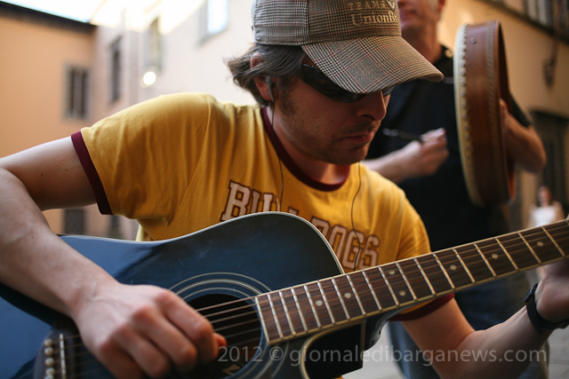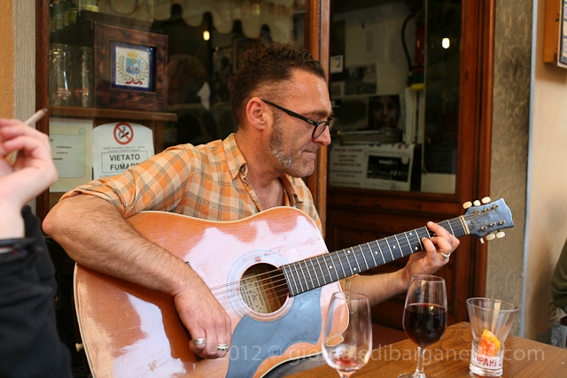 Musicians jamming outside Aristo’s – Dr. Frame alias David Tazioli taking time off from recording his latest video