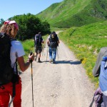 La vallata fu anche teatro di imponenti interventi di forestazione che oggi caratterizzano un paesaggio molto più vivace di altri settori della Garfagnana. Pini, abeti e larici si insinuano nella faggeta. Attraversiamo e, soprattutto, vediamo ampie praterie e vecchi coltivi. Lo sguardo preannuncia una sorpresa, ma intanto attraversiamo uno dei torrenti che confluiscono a formare il Fiume Serchio. Mettere i piedi nelle sue fresche acque è di gran sollievo ma al suono del fiume inizia a sovrapporsi quello dei “campanacci” che dondolano fissati al collo delle pecore. A dispetto della riflessione fatta poco sopra, la nostra attenzione viene catturata proprio da un grande gregge.