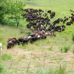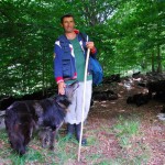 Abbandoniamo il sentiero dirigendoci verso una grande prateria quando il gregge si dirige verso di noi. Alcuni cani ne controllano il movimento e circa quattrocento pecore sfilano davanti al nostro naso. Non si contano gli scatti della macchina fotografica, scatti che non si interrompono nemmeno quando Miahi, un pastore romeno, ci raggiunge. Parliamo soprattutto della sua vita e quasi non sembra rendersi conto del fatto che è protagonista di un fatto importantissimo: lui guida un grande gregge (lo scorso anno erano addirittura 800 capi) in un luogo che di greggi ne ha ospitati moltissime per poi rimanerne quasi orfano. Ci congediamo con lui che ci dà 10 euro: serviranno per una ricarica telefonica…