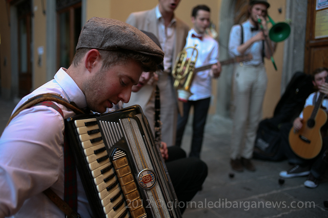 Dopo un lunedì più… introspettivo, ieri sera la festa del Centro astorico è tornata ad animarsi di gente, suoni, colori e sensazioni. Una bella serata tra le antiche mura di Barga in mezzo a tanta buona musica, come quella proposta in piazza Angelio dalla formazione scozzese TJ Muller and The Dixie Six che hanno portato una ventata di novità con una versione molto british della musica Dixieland, ispirata insomma dal jazz bianco di New Orleans. Jazz più puro e presentato ai massimi livelli invece in Piazza dell’Annunziata con la formazione Interplayers Trio con l’inossidabile Piero Orsi alla batteria, Moraldo Marcheschi al sax tenore e soprano e Manrico Seghi all’organo.