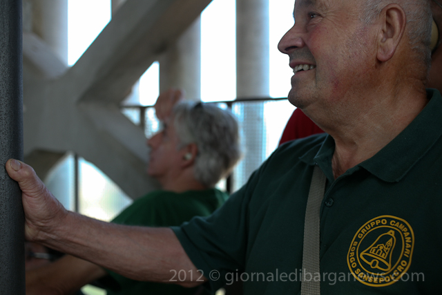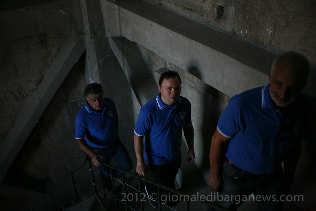 Believe it or not, Cristian Tognarelli suffers from severe vertigo and has to be guided up the steep steps of the bell tower by his fellow bellringers who coax him up, keeping his attention away from the windows and the drop below until they reach the bells where concentrating on ringing the bells keeps his fear at bay … that is until it is time to return down the steep stairway once again.