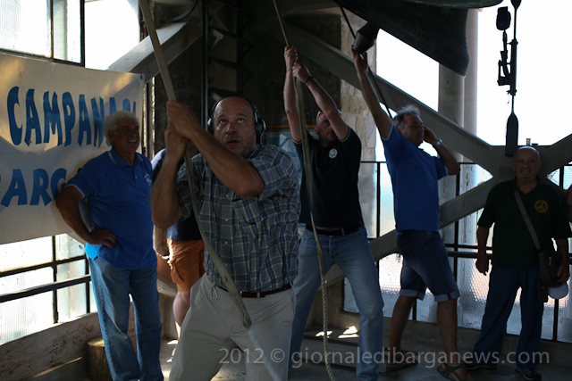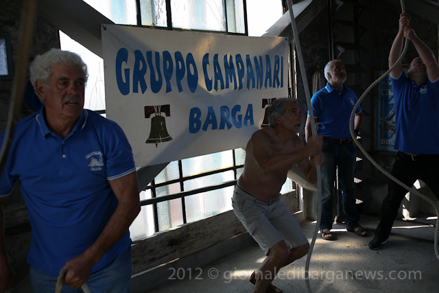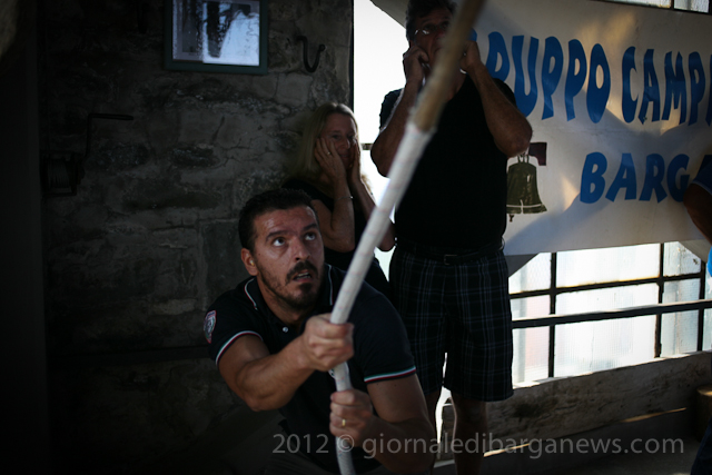 Bell ringers of all ages from San Sepolcro, Corsagna, Perpoli, Cardoso, Chiozza, Bargecchia, Cascio and Lucca were in Barga this morning to help the Campanari – the bell ringers of Barga celebrate the first two hundred years of the Mezzana, the middle bell of the three bells in the duomo.