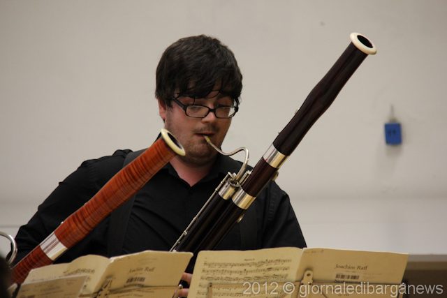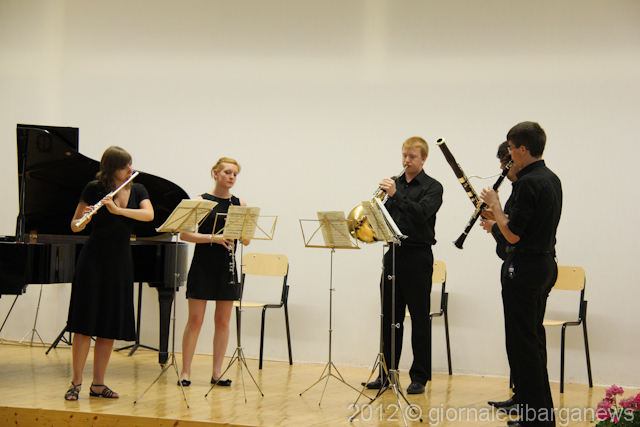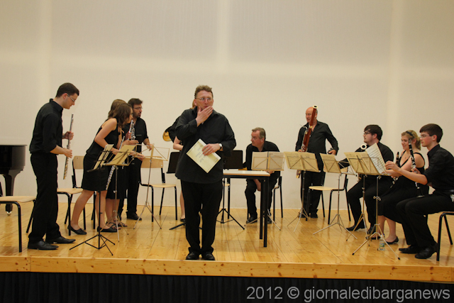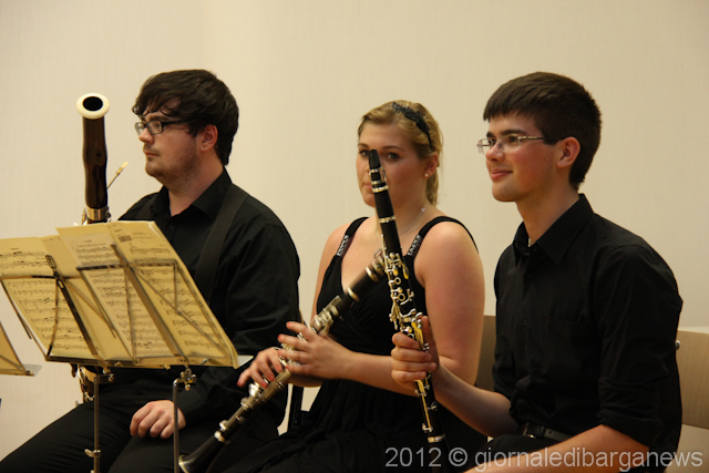 Un programma di tutto rispetto e peraltro davvero interessante quello proposto a Barga, iniziato con l’esibizione corale degli insegnanti di Music in Tuscany: William Moriconi (oboe), Lawrence Gill (clarinetto), Grant McKay (fagotto), Timoty Brown (corno) ed il fornacino Massimo salotti al piano che hanno proposto il Quintetto in Mi b K.452 di Mozart.
