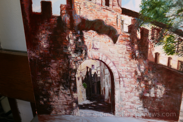 This afternoon we tried to interview Rene about what brought him up from the south of Italy to work in this area and just what it is that fascinates him so much with the Barga landscape but Rene is a man of few words when it comes to talking about his own work. As he says he is a painter and not a writer or an actor and so the painting should speak for him.