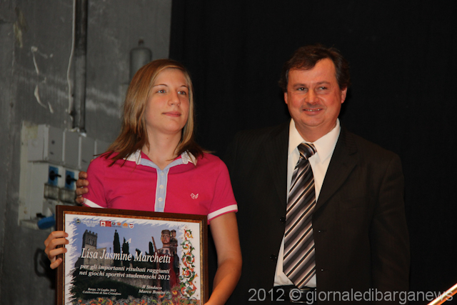 Per gli importanti risultati raggiunti nei giochi sportivi studenteschi 2012, sotto la guida degli istruttori Luigi Cosimini, Vinicio Bertoli e Massimo Casci, ai ragazzi del gruppo Marciatori Barga, di cui è presidente Augusto Rosiello e vicepresidente Giuseppe Luti: