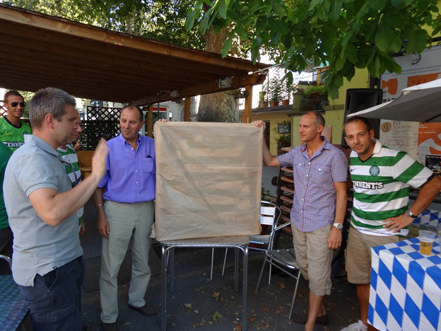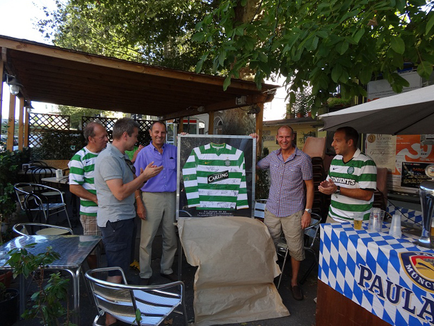 A beautiful green and white shirt autographed by the Celtic players that won the Scottish Premier League 2011/12 was donated to the Barga Celtic Supporters Club by Anthony and Aldo Cecchini. The two, father and son, are resident in Scotland, where they own two restaurants with great success, specifically in Ayr and Ardrossan, Ayrshire, south-west from Glasgow, but with extremely solid barghigiane roots. Fans of Celtic, in fact, they are season ticket holders at Celtic Park, they managed to get the precious gift that is now at the clubhouse at the Bar of PaoloGas.