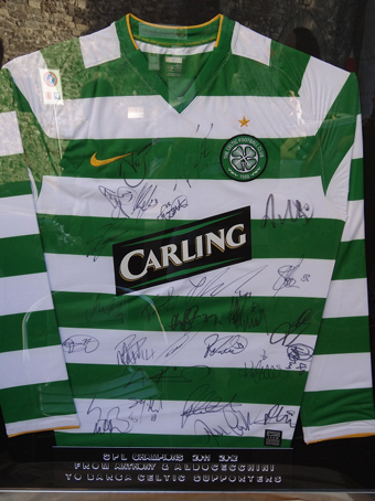 Una bellissima maglia biancoverde autografata dai giocatori del Celtic che hanno vinto il campionato scozzese 2011/12 è stata donata al Barga Celtic Supporters Club da Aldo ed Anthony Cecchini. I due, padre e figlio, sono residenti in Scozia, dove possiedono due ristoranti di grande successo, precisamente a Ayr e Ardrossan nell’Ayrshire a sud-ovest di Glasgow, ma hanno saldissime radici barghigiane. Tifosissimi del Celtic, sono infatti titolari di abbonamento stagionale al Celtic Park, sono riusciti ad ottenere il prezioso dono che ora è in bella mostra presso la sede del club al Bar del PaoloGas.