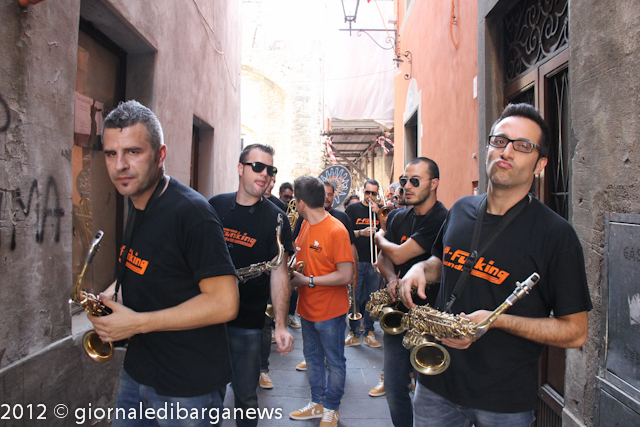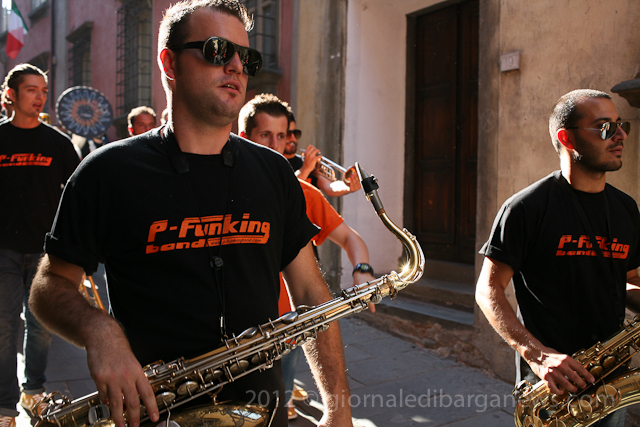 Dopo l’assenza dello scorso anno, l’edizione 2012 ha visto il ritorno in grande spolvero della P. Funking Band, una delle street band più famose in Italia ed anche una delle più coinvolgenti. Anche oggi ha fatto il pienone ed ha trascinato la gente in lungo ed in largo per Barga Vecchia, portando l’entusiasmo del pubblico alle stelle.
