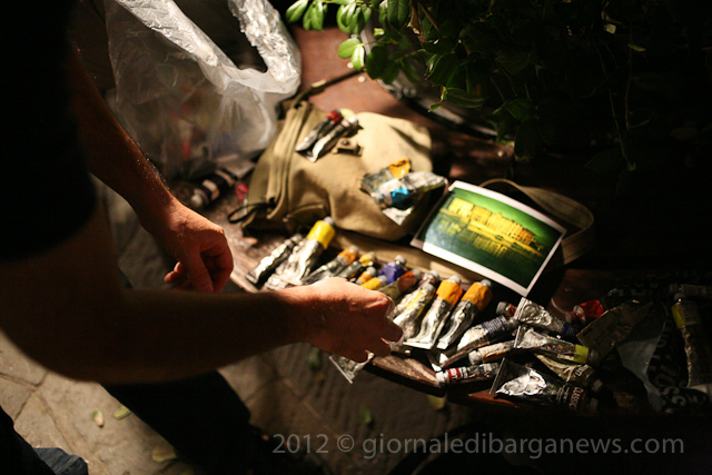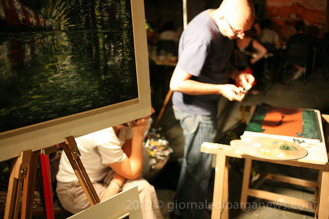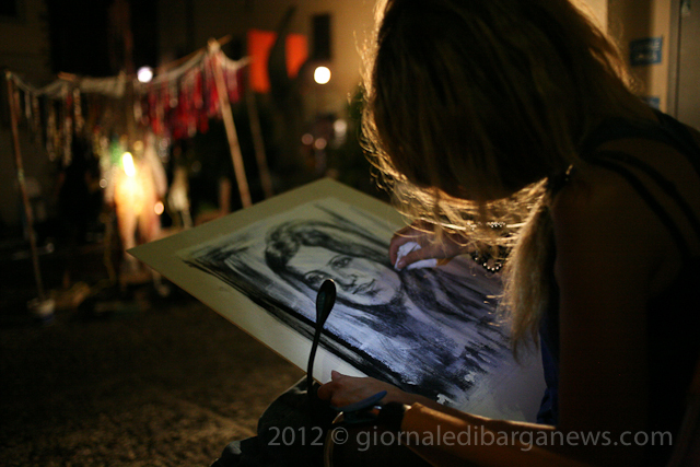 The first night was good but the second, far far better with the artists gradually settling in to the location and the ambience of Barga Vecchia. One or two of the artists on the first evening looked kind of uncomfortable under the bright lights and the crowds moving in front of them. During the second evening, they looked far happier and much more relaxed with their moving audience.