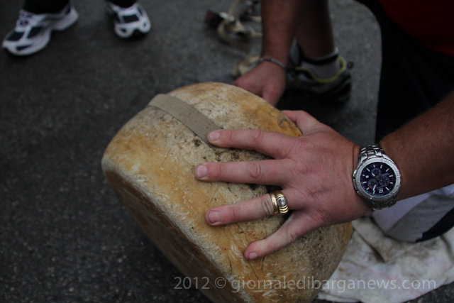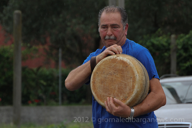 2. Poiché le forme di formaggio (pecorino, asiago, parmigiano ecc.) sono create con i pesi e misure notevolmente diverse, le gare vengono suddivise per categorie (leggera fino a kg 1,500, media leggera fino a kg 3, media fino a kg 6,500, pesante fino a kg 16 e massima oltre kg 25) secondo il peso, nell’ambito di ciascuna categoria debbono essere scelte forme uguali che dopo ogni gioco vengono scambiate tra i contendenti: