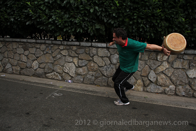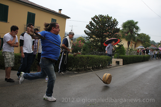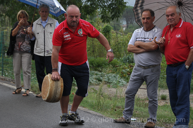 Despite the occasional sprinkling of rain, large crowds were this afternoon in Filecchio for a sporting event with a difference. An event which does not appear on television, is hardly reported in newspapers and for many people has acquired the label”an urban myth” as they are unsure if it is a real event or not.