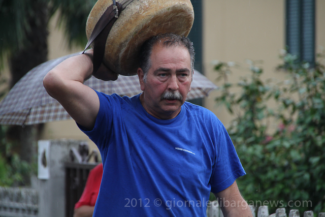 For the spectators the sport of Tiro della Forma is not without its dangers as a missed timed throw or a badly deflected fast moving cheese can cause quite severe injuries. Luckily in the narrow streets of Filecchio there were marshals not just guiding the competitors but also making sure that any spectators were out on the danger zone but still it paid to be alert this afternoon.
