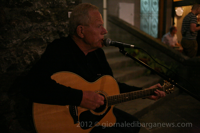 L’osteria was sold out – completely full including all the tables out in the Piazza this evening for a solo concert by the veteran rocker, Geoff Collins-White